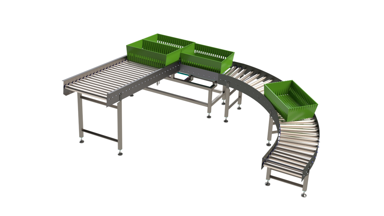 - חקלאות: הזנה אוטומטית של ארגזי פלסטיק ריקים לקו מיון ואריזת פירות וירקות.