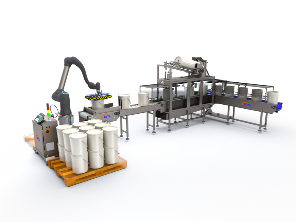 מכונת מילוי דליים אוטומטית מייעלת את התהליך הידני של אריזת מוצרים בתפזורת לדליים. ניתן לתכנן את המערכת כקו מלא, המבצע באופן אוטומטי הפרדה של דליים ריקים מערימה, שינועם לתחנת המילוי, מילוי מדויק של המוצר (לפי משקל או נפח), ובסיום הנחה וסגירה של המכסה.