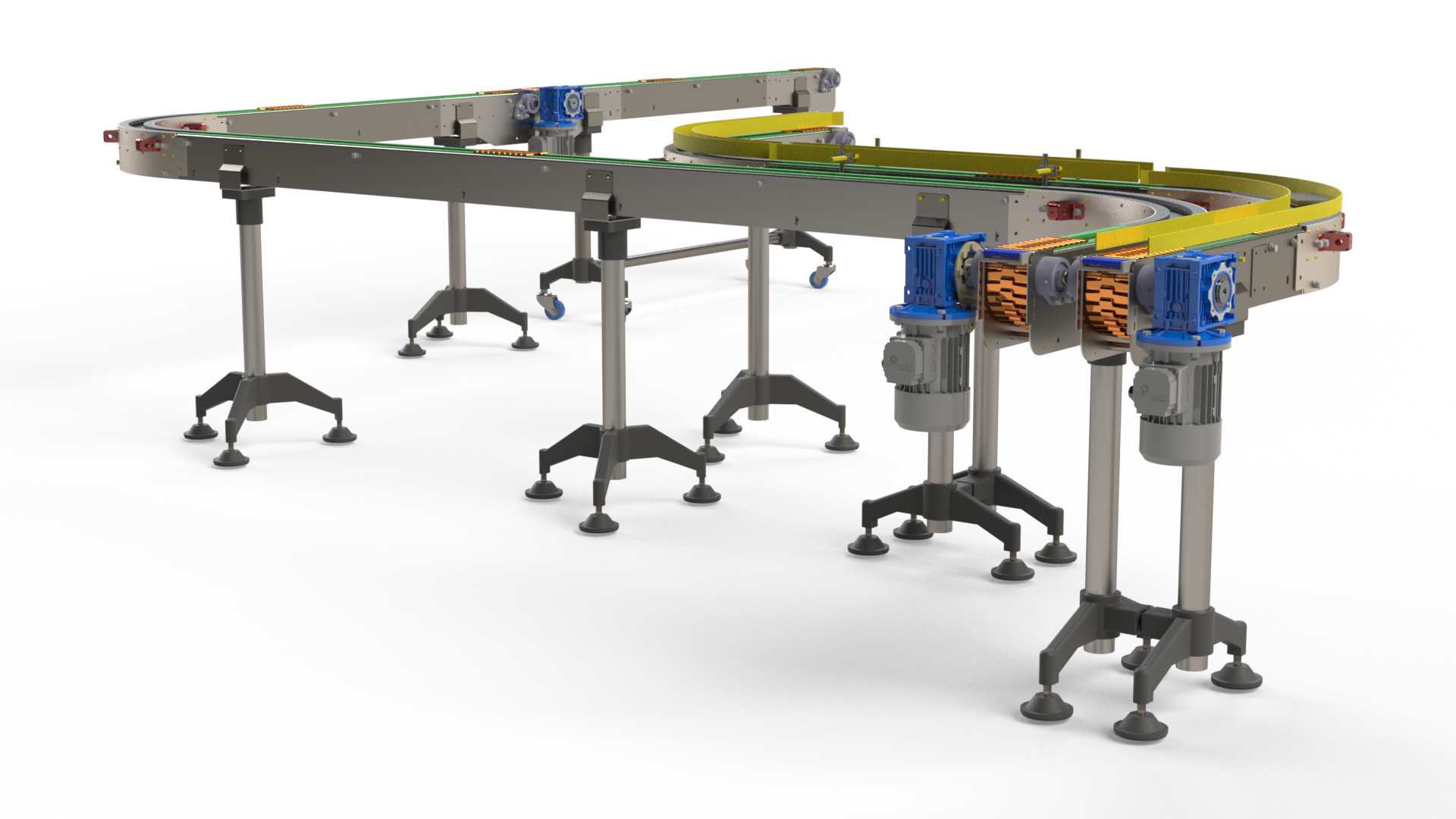 מערכת שינוע מודולרית מסוג שרשרת עילית (Table Top), המהווה את עמוד השדרה של קווי מילוי ואריזה מודרניים. המערכת מספקת תנועה חלקה, יציבה ומהירה לבקבוקים, צנצנות, פחיות ומכלים קשיחים מכל הסוגים. תכנון מותאם אישית מבטיח מעברים חלקים בין מכונות, יכולות הצטברות (accumulation) למניעת עצירות קו, וגמישות מקסימלית להתאמה למוצרים עתידיים. הפתרון האידיאלי להגברת התפוקה והאמינות במפעלי מזון, משקאות, פארמה וטיפוח.